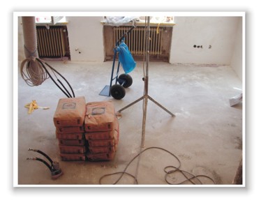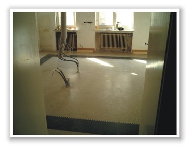 Neuverlegung eines Küchenbodens aus Terrazzo mit Fries und Stiftmosaiken