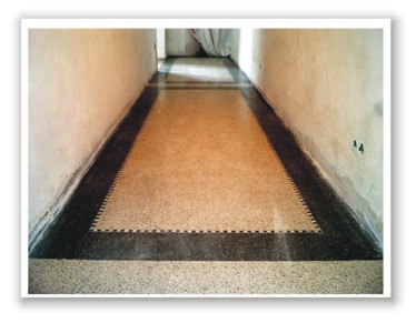 Neuverlegung eines Terrazzobodens mit Fries und Stiftmosaiken