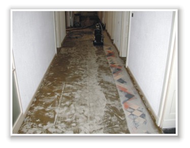 PVC-Belag entfernen und Sanierung des darunter liegenden originalen Terrazzobodens