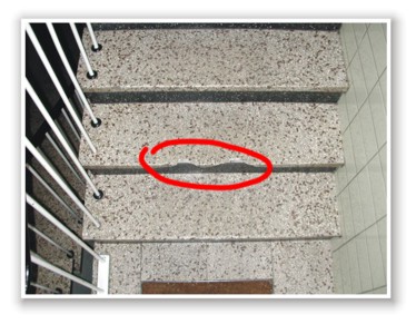 Reparatur von Ausbrüchen in Werksteinstufen