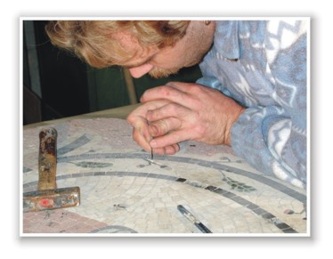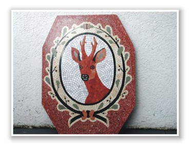 Schmuckplatte, Schachbrett aus Terrazzo mit Mosaiken