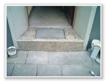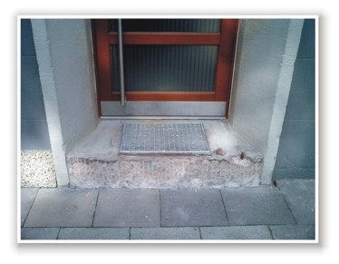 Sanierung einer Außenstufe mit Gitterrost und Rahmen